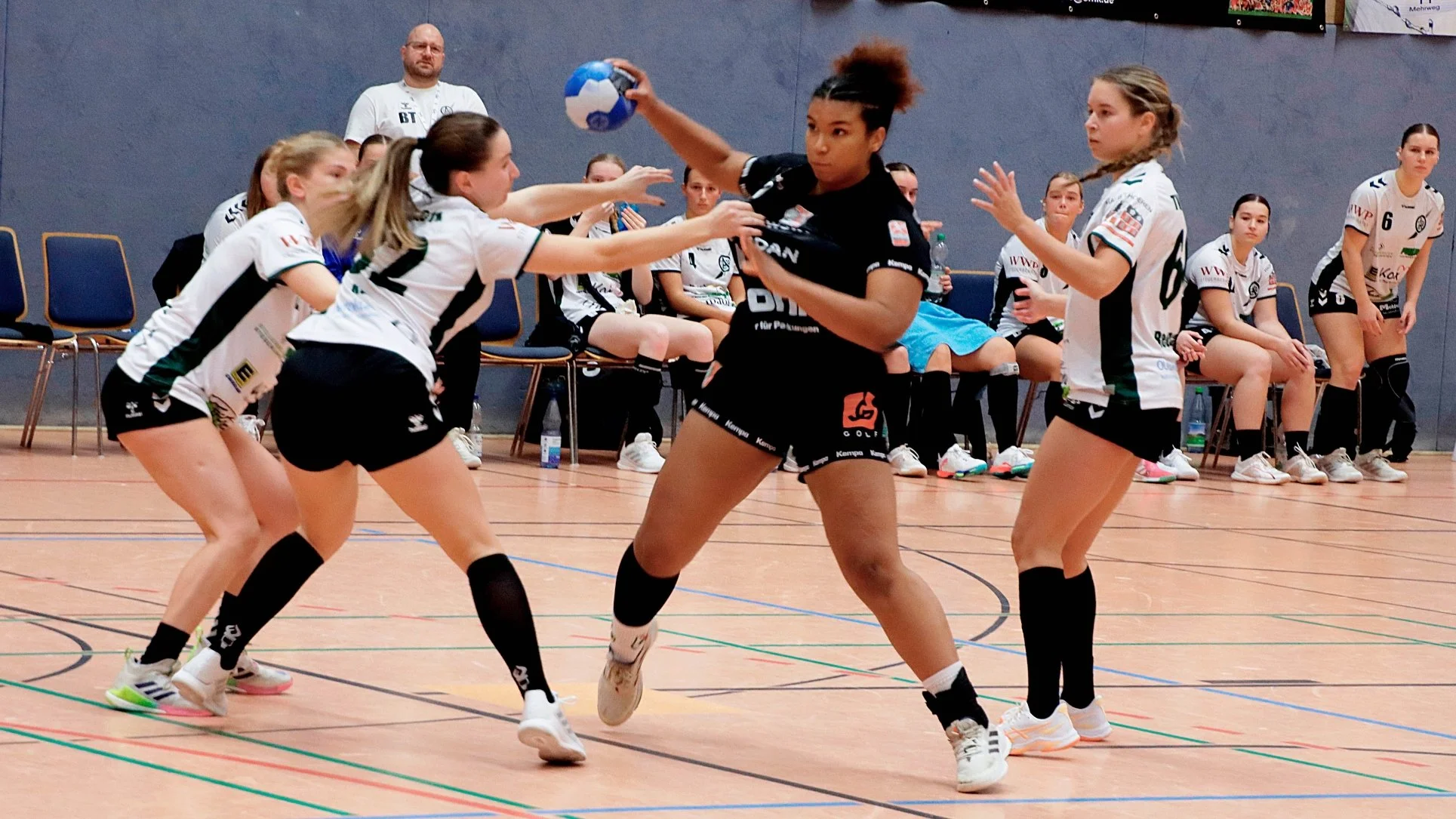 Angesichts dieser Leistung gab wohl keiner der Zuschauer noch einen Pfifferling auf das Team, das direkt nach Wiederanpfiff auch noch das 12:19 kassierte. Doch die Mannschaft steigerte sich vor allem in der Abwehr. Die jungen Gäste, die mit Lea Bleckmann nur eine Spielerin aus dem erweiterten Drittligakader aufboten, begannen zu wackeln, und der TVB holte Tor um Tor auf. Zusätzliche Motivation gaben parierte Siebenmeter von Salimova und Kollegin Valeria Morozeva. Im dritten Versuch erzielte die trotz ihrer Jugend im Rückraum durchsetzungsstarke Shayen Tomaszewka nach 48 Minuten den 23:23 Ausgleich, nachdem sie sich zuvor schon zwei Mal durchgetankt, den Abschluss aber verpatzt hatte.